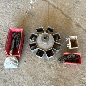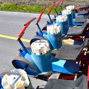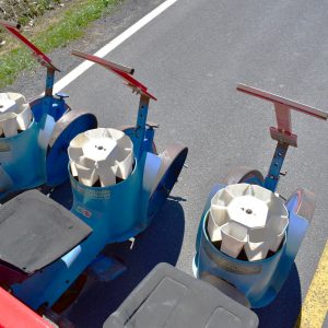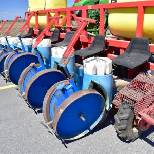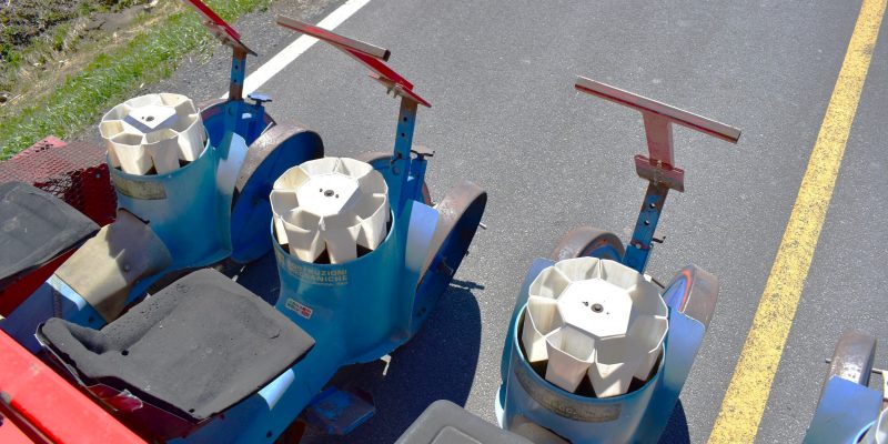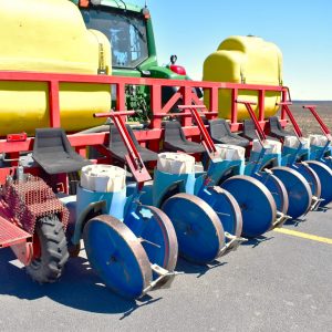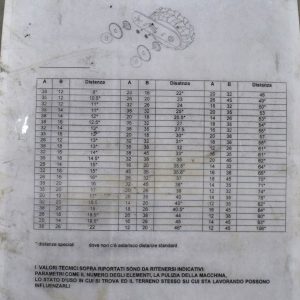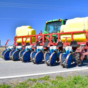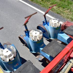 Ferrari transplanter, model FX 6 rows at 30 inches…8 bucket carousel with 2” 3/4 passage (cauliflower, brocolli, etc)…Two drives, two transmissions for spacing adjustment…Spacing between plant from 5,5 to 30 inches (see chart)…Front discs for residues…Stainless steel socs…Press drill wheels for depth can be adjusted quickly by crank…Adjustment right-to-left (see photo) allows you to tighten the pressure on the transplant for a perfect planting result…Water tanks are offset forward for weight distribution…4 wheels 11L-15 SL for stability…Many gears (see photo) for spacing adjustment are included…We clear customs and ship quickly everywhere in USA and Canada, just contact us!