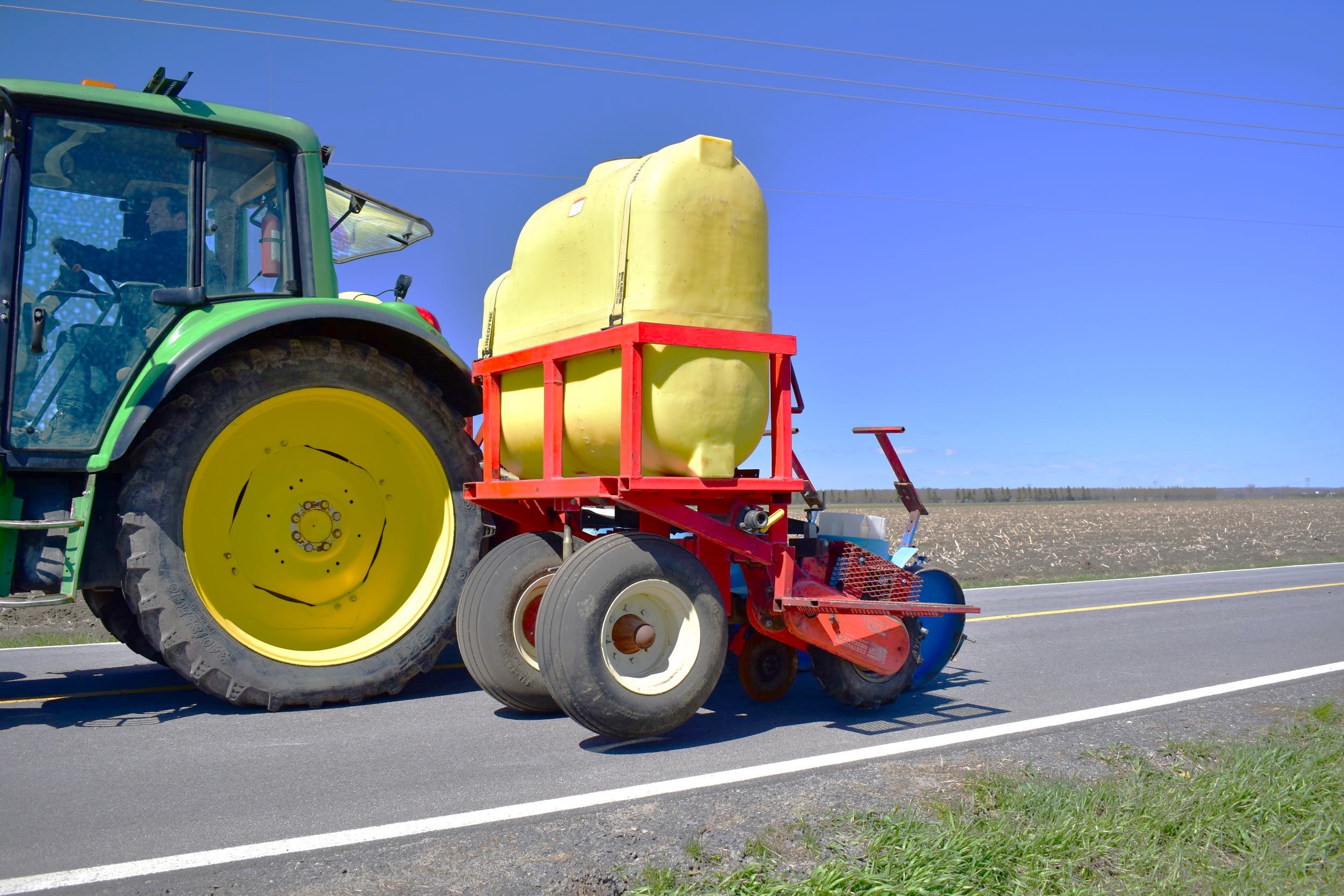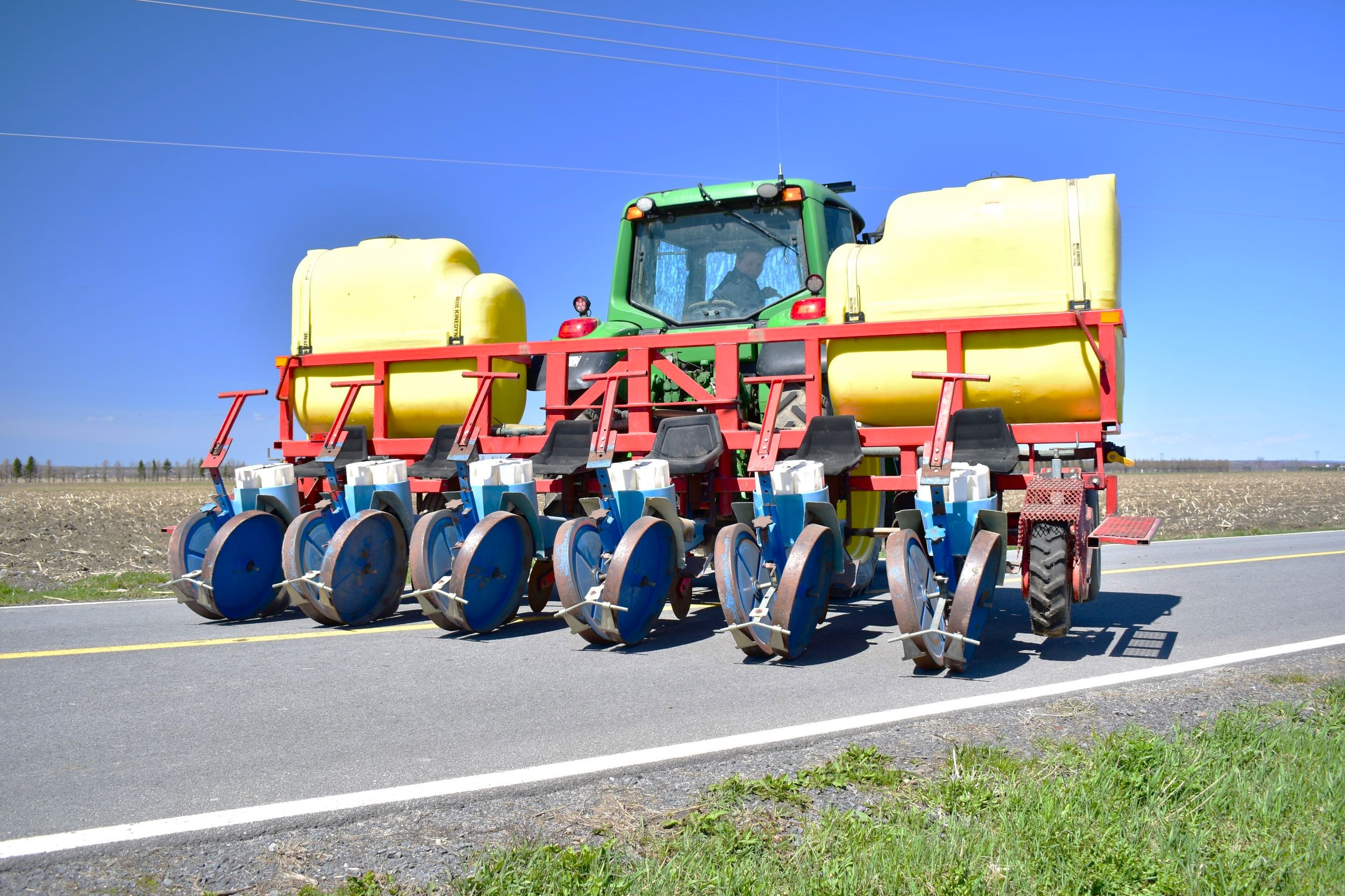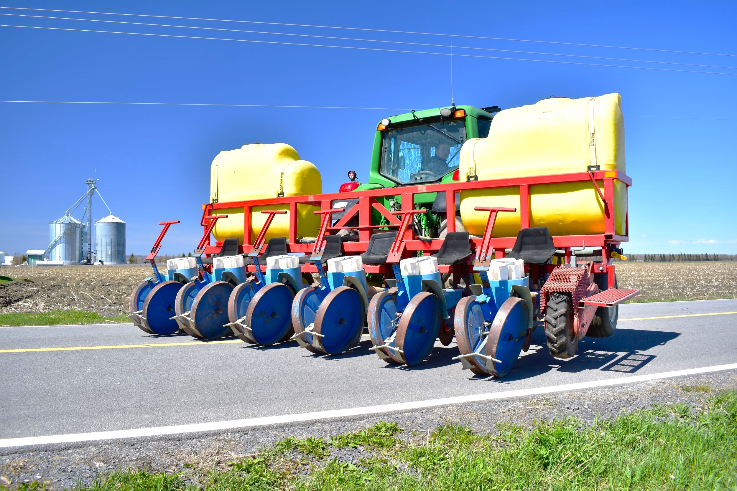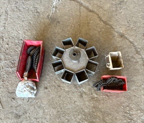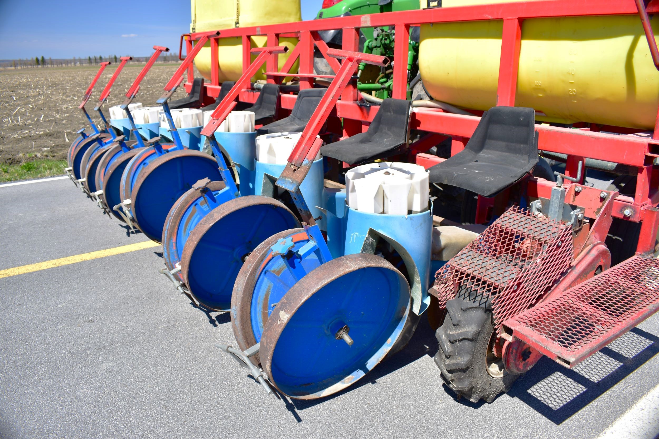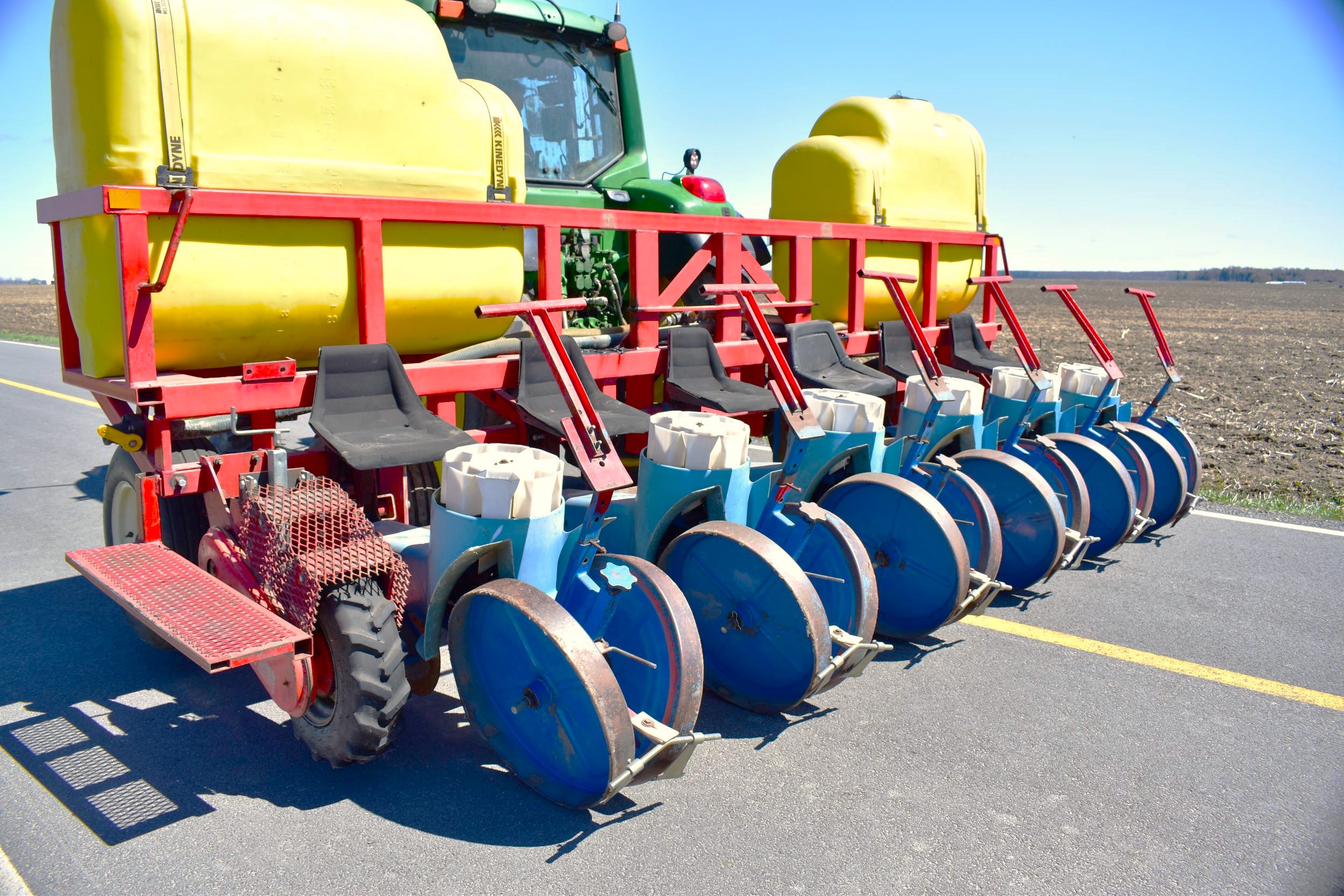 Ferrari transplanter, model FX 6 rows at 30 inches…8 bucket carousel with 2” 3/4 passage (cauliflower, brocolli, etc)…Two drives, two transmissions for spacing adjustment…Spacing between plant from 5,5 to 30 inches (see chart)…Front discs for residues…Stainless steel socs…Press drill wheels for depth can be adjusted quickly by crank…Adjustment right-to-left (see photo) allows you to tighten the pressure on the transplant for a perfect planting result…Water tanks are offset forward for weight distribution…4 wheels 11L-15 SL for stability…Many gears (see photo) for spacing adjustment are included…We clear customs and ship quickly everywhere in USA and Canada, just contact us!