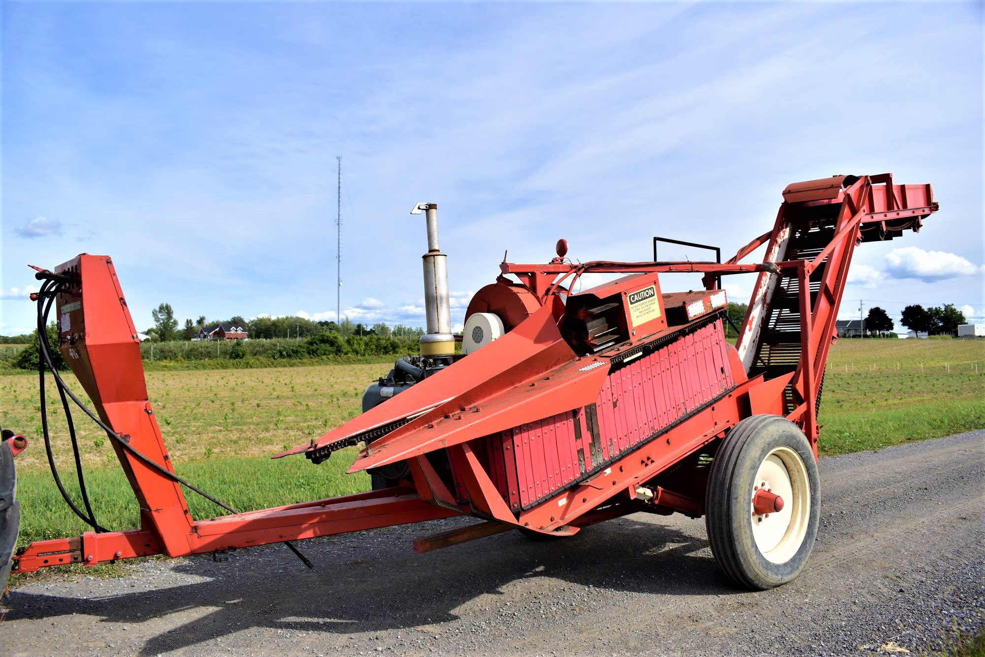 Pixall sweet corn harvester, model Trac-Pix…1-row on 3-point hitch…Refurbished exactly as it was when it letf the factory and adjusted for the fresh market by Agricor’s garage, the sweet corn harvester specialists!…We adjusted it and it harvests exactly like hand picking…No more pain back and heat, don’t waste your energy and get this machine, you will love it!…A small 65HP tractor can very easily pull it so no need for a big tractor…The rear discharge conveyor turn to the rear if you want to work solo (single tractor which pulls the harvester and the trailer at the same time)…Finally, we offer technical support anywhere on the planet, we can come to your farm on request to teach you all the tips of sweet corn crop because we are also sweet corn growers since 65 years, we know everything about this crop and its harvesters such as FMC, Byron, Pixall and Oxbo CP100…Don’t hesitate to make purchase, we ship and clear customs quickly anywhere in the world, just write or call us to do it!