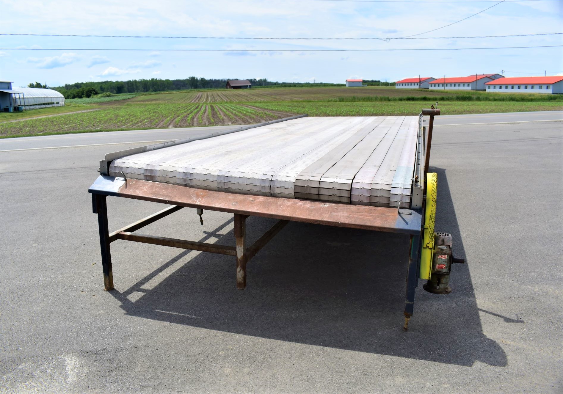 Sorting or approach table 81 inches by 20 feet, food grade, hoppman (USA, VA)…In aluminum except the frame which is steel… currently 36 inches high (over the belt)…No motor but transfert case is included…Conveyor which is in new condition and is expensive…Very good condition and at a more than ridiculous price!…Watch our video on Youtube for more details.