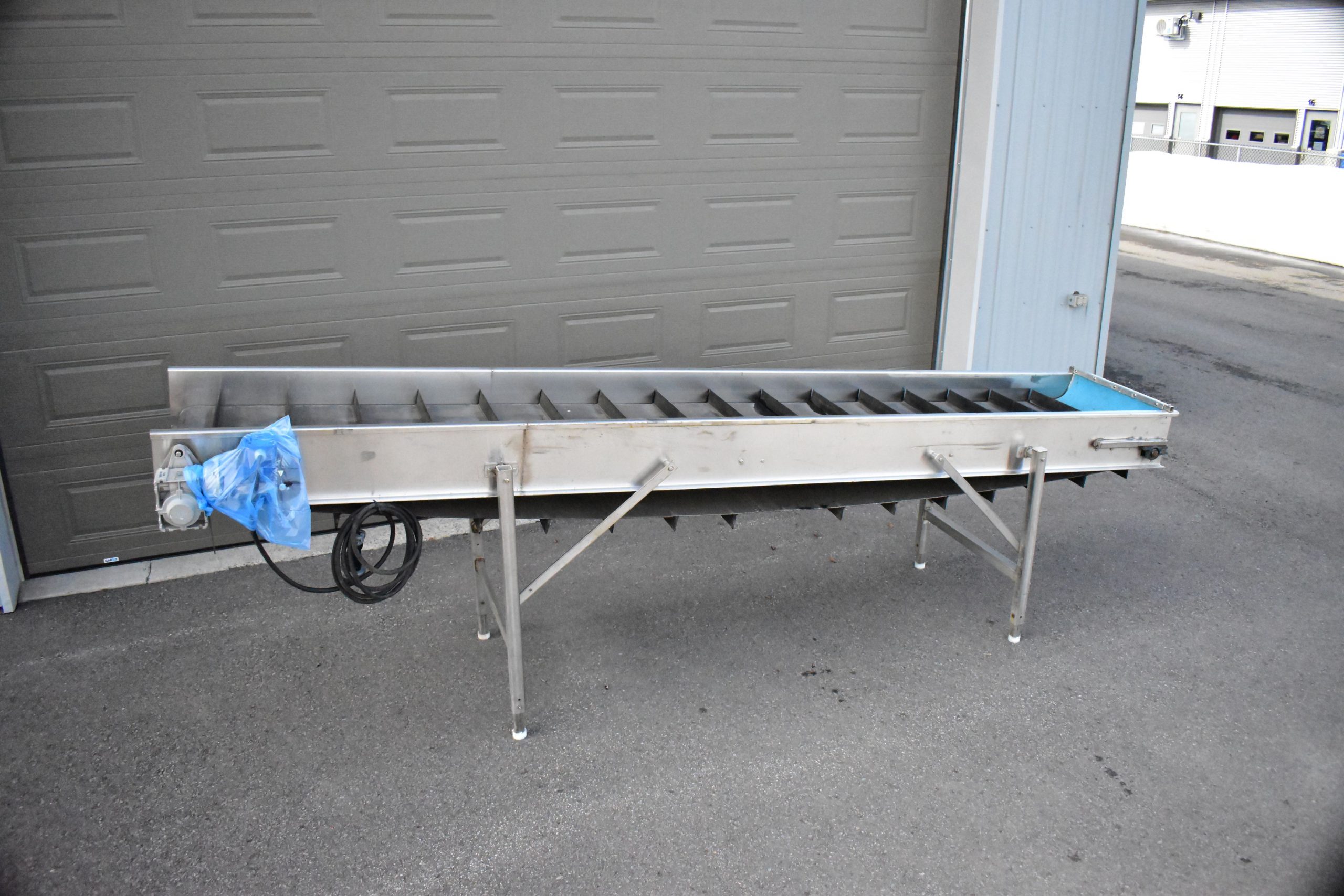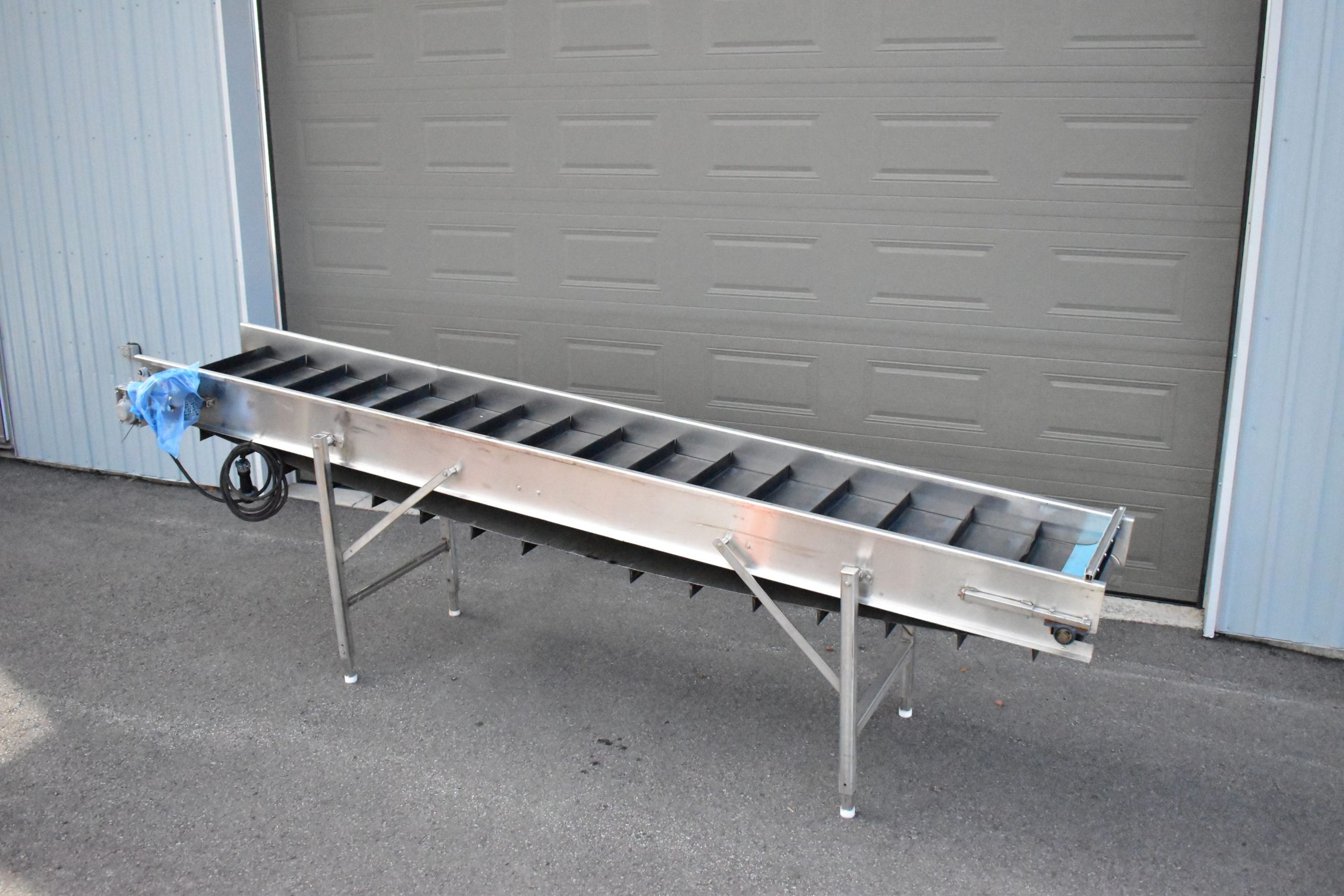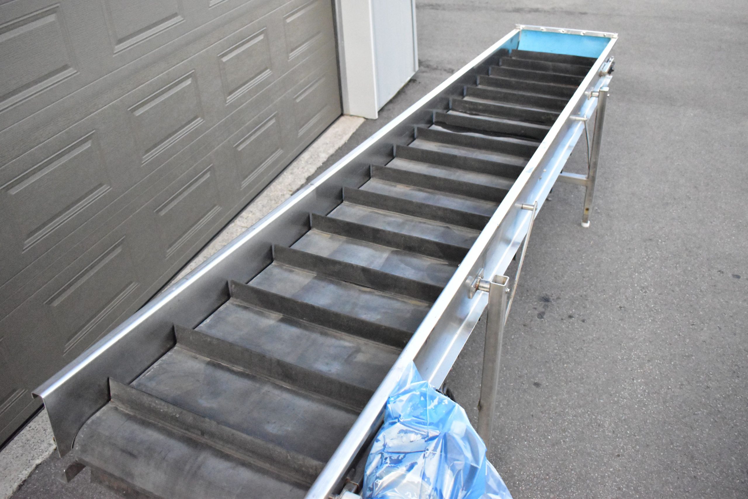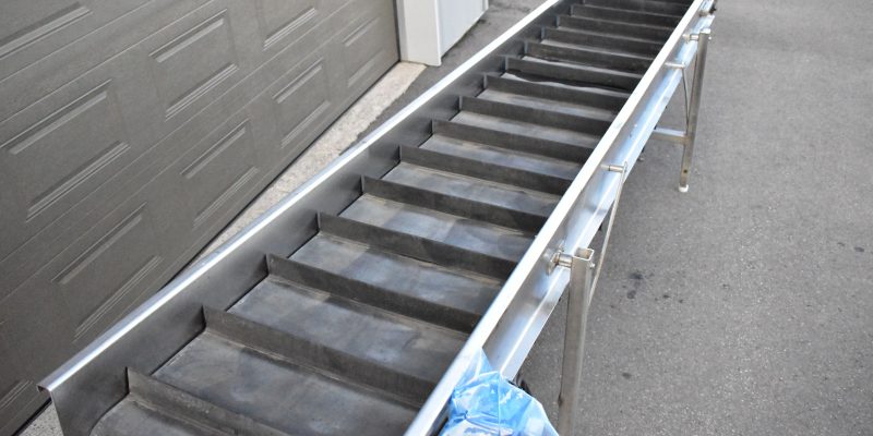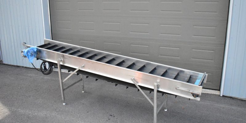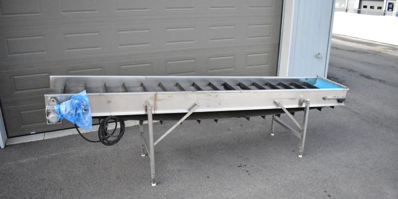 Convoyeur-élévateur 24 X 14 pieds en acier inoxidable…Moteur électrique 575 Volts…Palettes de 2 » 1/2 au 10 pouces…Pattes ajustable pour fonctionner en élévateur…