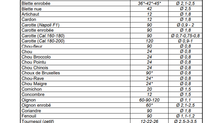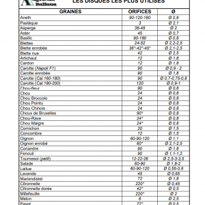 -Agricola SN/SND/SNT…De 0.6mm à 2.5mm…carottes/oignons ligne simple et double…navets ligne simple…betteraves ligne simple.