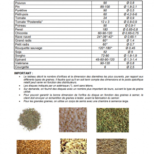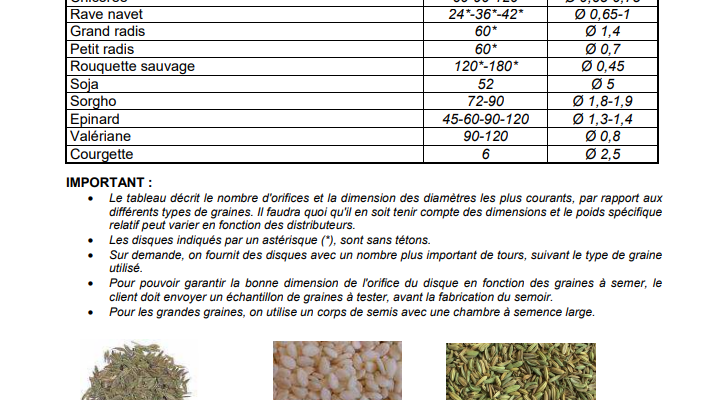-Gaspardo V5/V20…De 0.8mm à 2.00mm….carottes/oignons ligne simple et double…navets ligne simple…betteraves ligne simple.