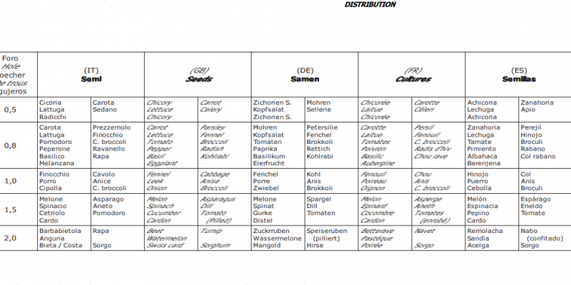 -Gaspardo Orietta…De 0.5mm à 2.00mm…carottes/oignons ligne simple et double…navets ligne simle…betteraves ligne simple.