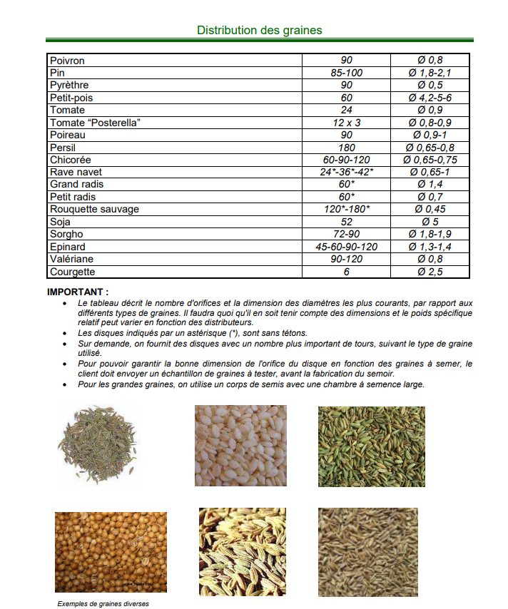 -Gaspardo V5/V20…De 0.8mm à 2.00mm….carottes/oignons ligne simple et double…navets ligne simple…betteraves ligne simple.