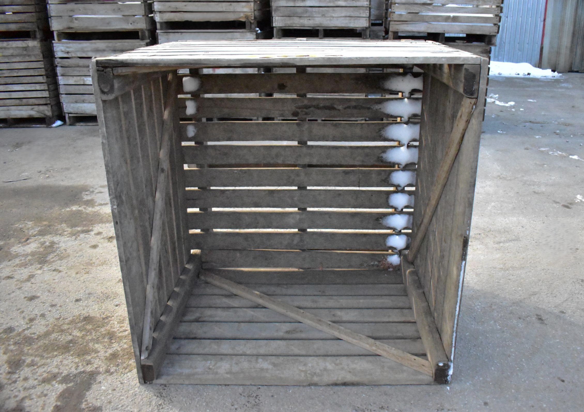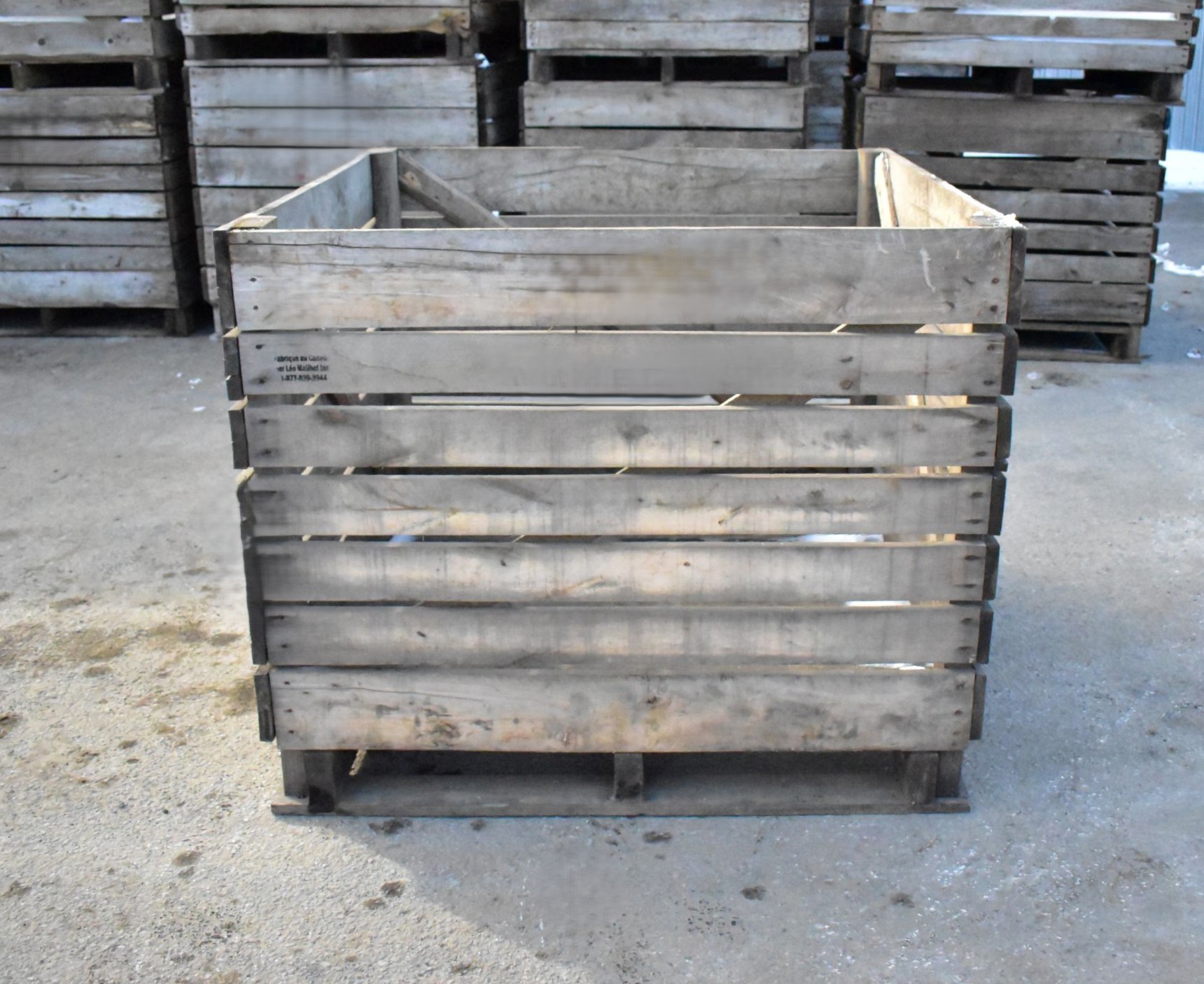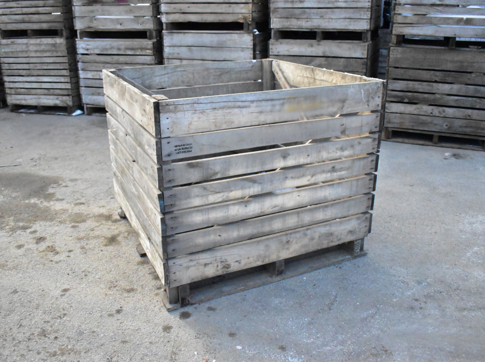 Lot de boîtes de bois 48 x 48 x 40…300 unités vendues en un seul bloc……Les boîtes sont des Mailhot 2018 et n’ont fait que du bio, leur condition est celle de quasi neuves!!!…Toutes boulonnées avec planches dessous, leur solidité est impeccable…Parfait pour carottes, oignons, patates, etc…Le transport est votre responsabilité, un chariot-élévateur sur place sera disponible pour le chargement…Les brisées, si applicable, (voir définition ) seront retirées au chargement donc votre chauffeur sera responsable de la sélection car aucun retour, ni crédit lorsque les boîtes auront quitté le site actuel.