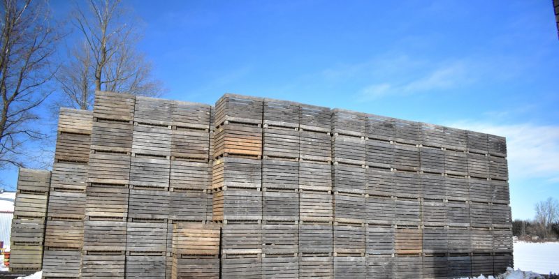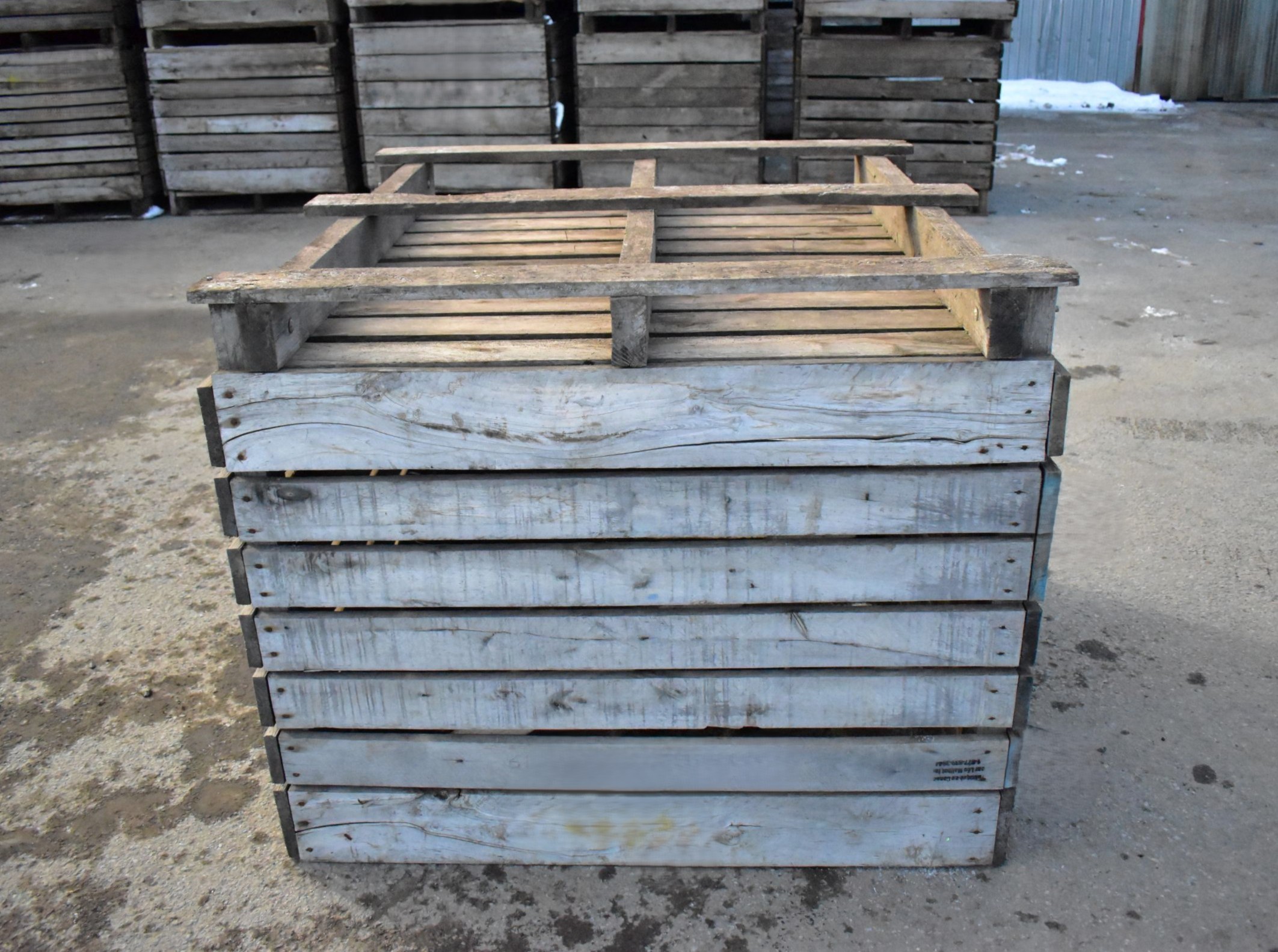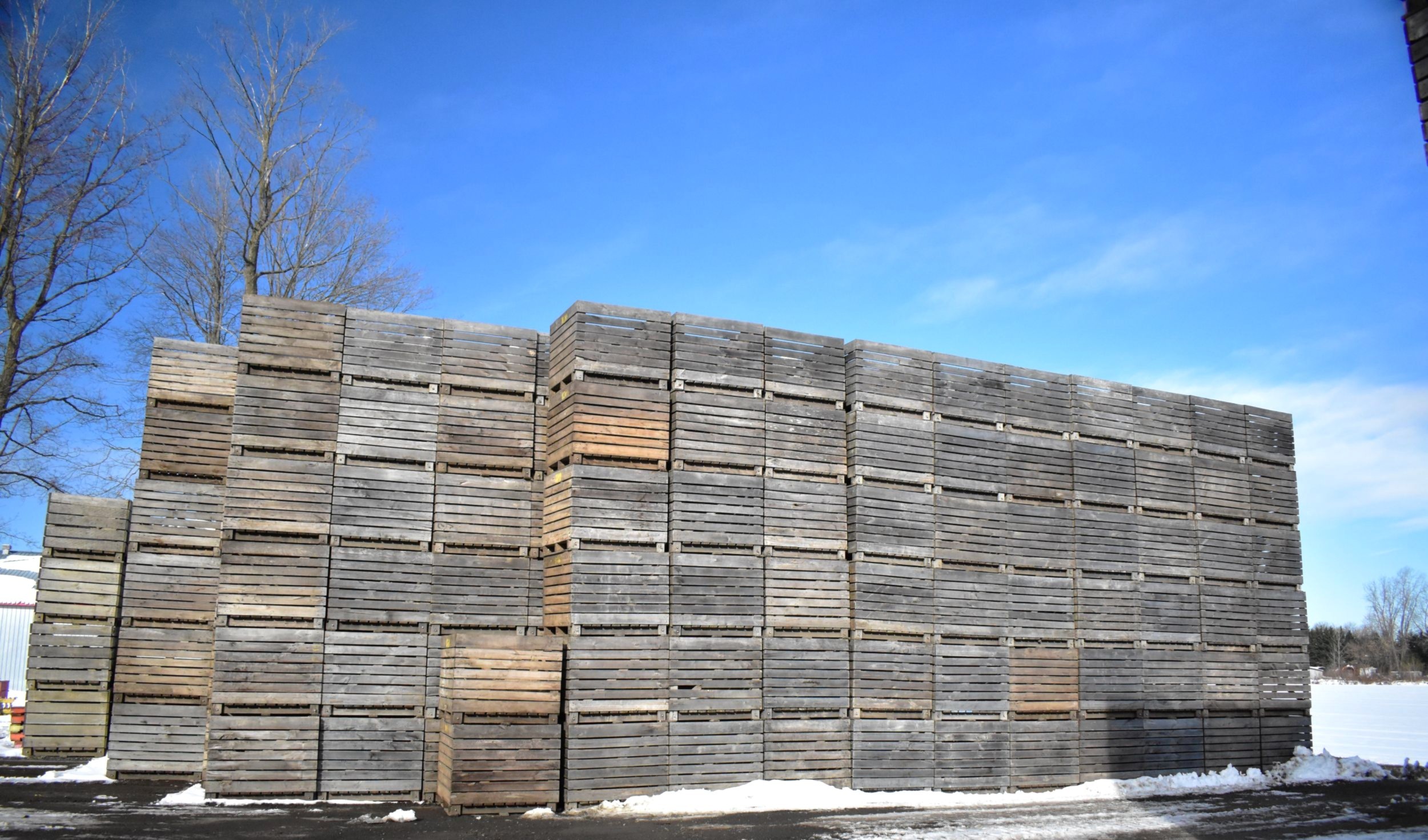 Lot de boîtes de bois 48 x 48 x 40…300 unités vendues en un seul bloc……Les boîtes sont des Mailhot 2018 et n’ont fait que du bio, leur condition est celle de quasi neuves!!!…Toutes boulonnées avec planches dessous, leur solidité est impeccable…Parfait pour carottes, oignons, patates, etc…Le transport est votre responsabilité, un chariot-élévateur sur place sera disponible pour le chargement…Les brisées, si applicable, (voir définition ) seront retirées au chargement donc votre chauffeur sera responsable de la sélection car aucun retour, ni crédit lorsque les boîtes auront quitté le site actuel.
