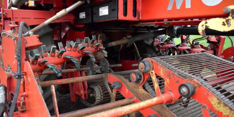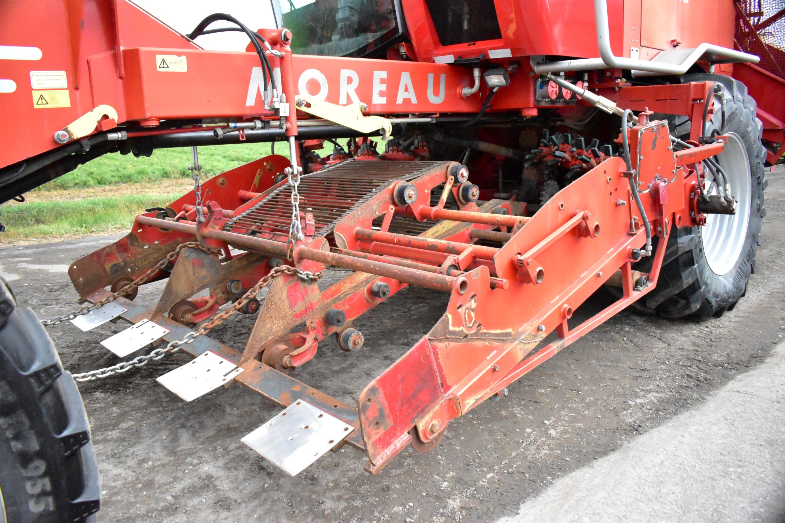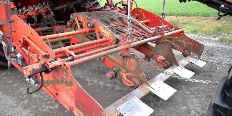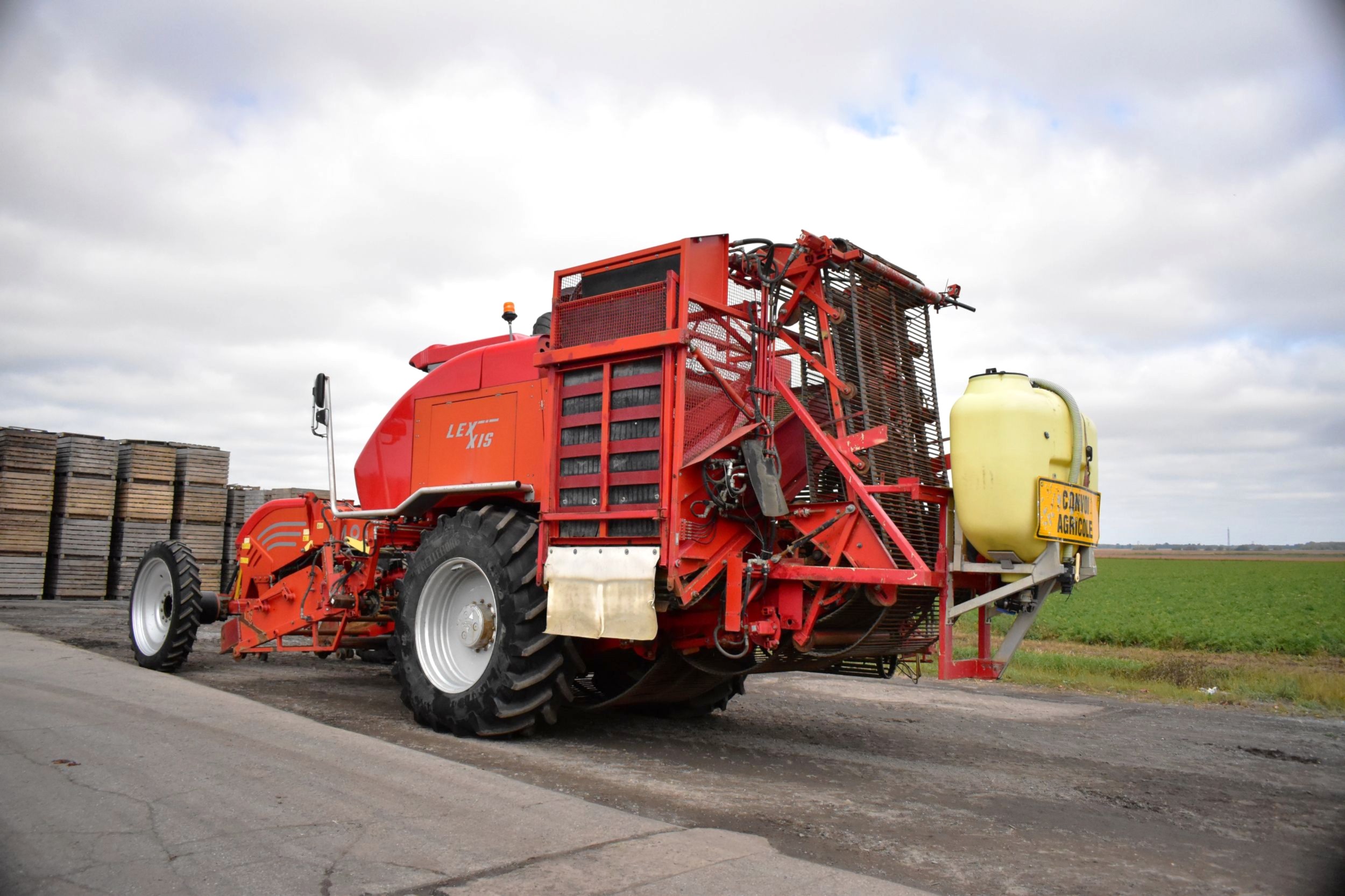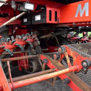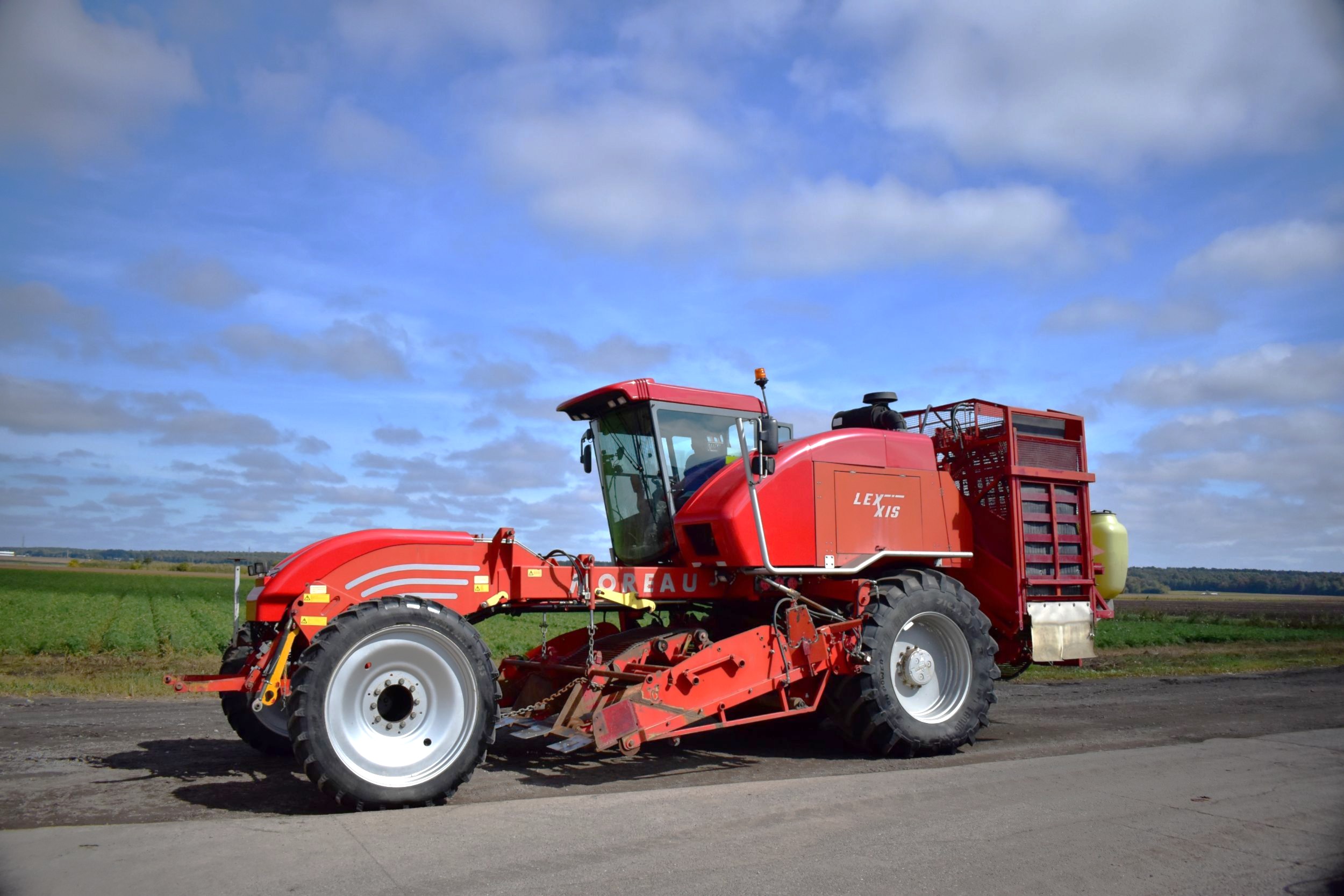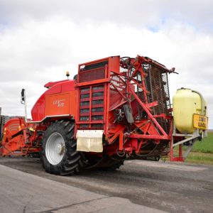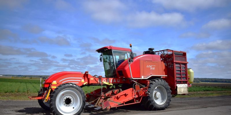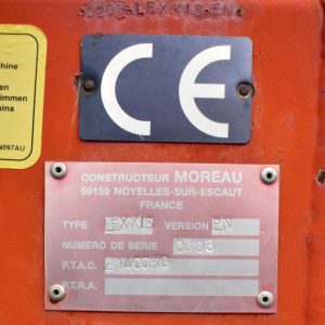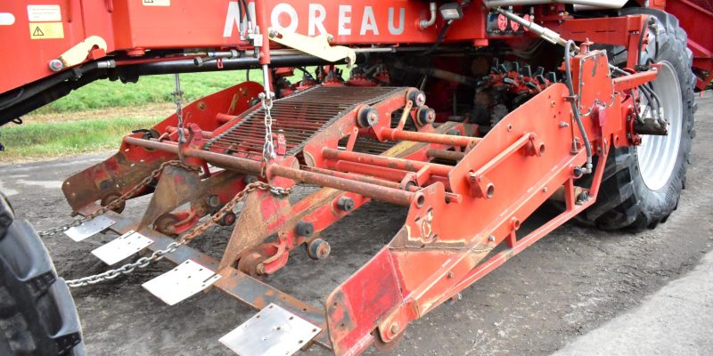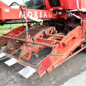2008- Récolteuse Moreau (France), modèle Lexxis…10 pieds de largeur de récolte, soit 3 planches de 40 pouces (courroies 38 pouces) dont les deux extrémités sont ramenées à la courroie du centre…Ensuite acheminé à l’arrière dans l’élévateur vertical (et sa réserve) qui vide sur le convoyeur de décharge…4 roues motrices et directionnelles, Moteur Volvo Penta avec transmission vitesse variable, le tout a 1 600 heures…Caméra latérale et arrière…La voie avant est à 120 pouces (espaceurs de 21 pouces chacun), pneu 11 pouces de largeur (270/95R 44 Kléber)…La voie arrière est à 96 pouces (pneu 28 pouces de largeur) soit 710/70R 42 Trelleborg…Cette récolteuse faisait des endives et elle peut être modifiée facilement pour faire des oignons ou en ajoutant des becs cueilleurs de carottes, pour courges ou devenir une aide-récolteuse stable et puissante, ses possibilités sont infinies!…Regardez notre vidéo pour plus de détails…Nous livrons partout au Canada, demandez-le!