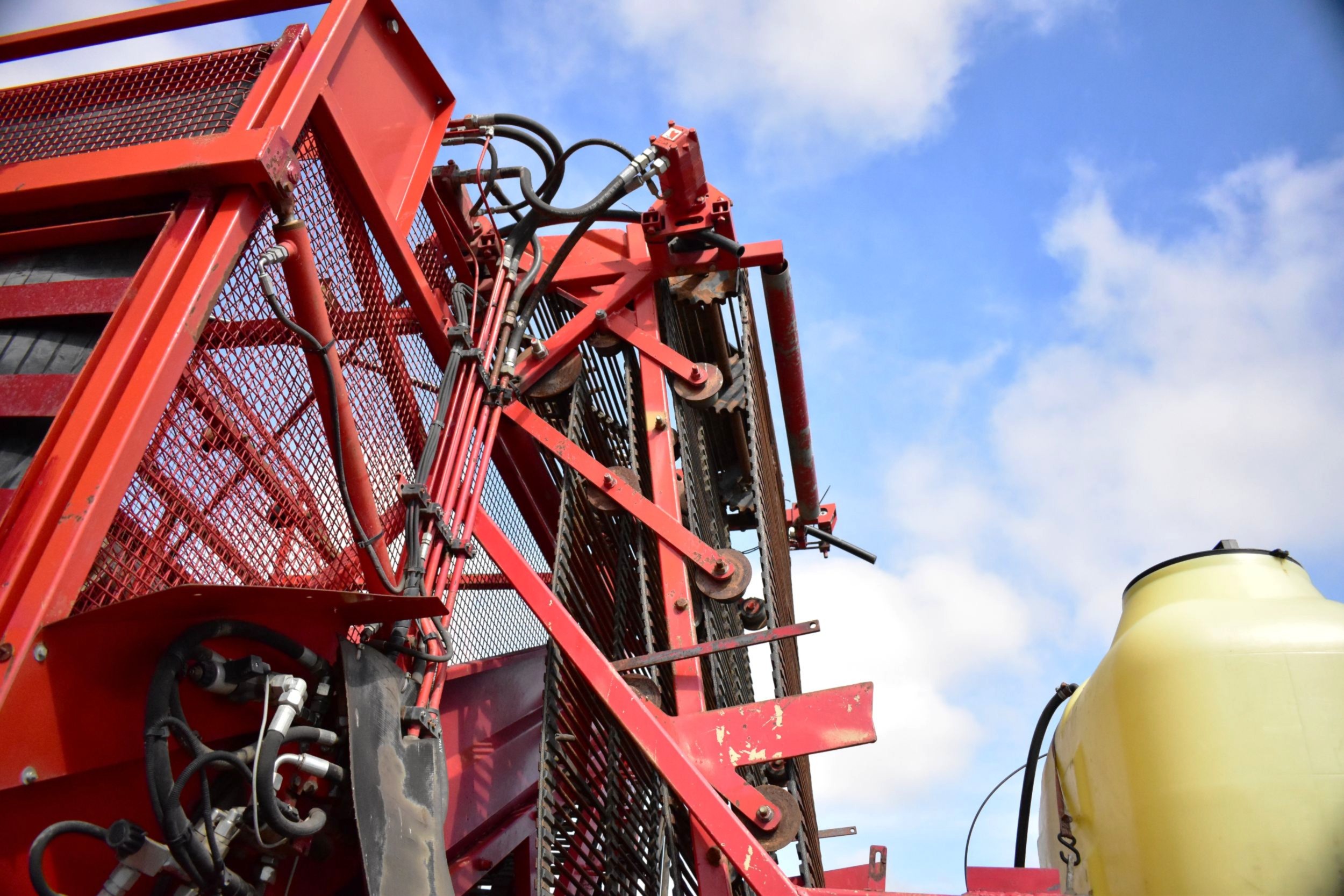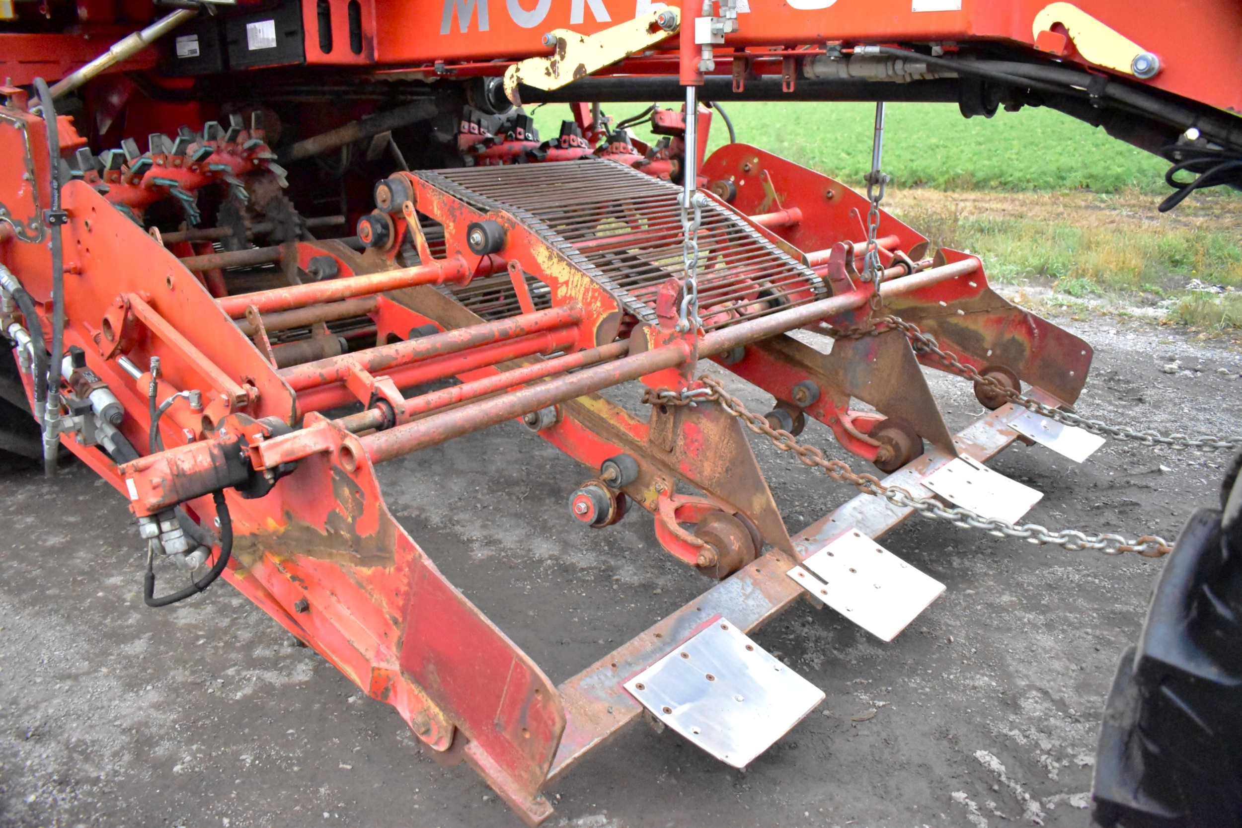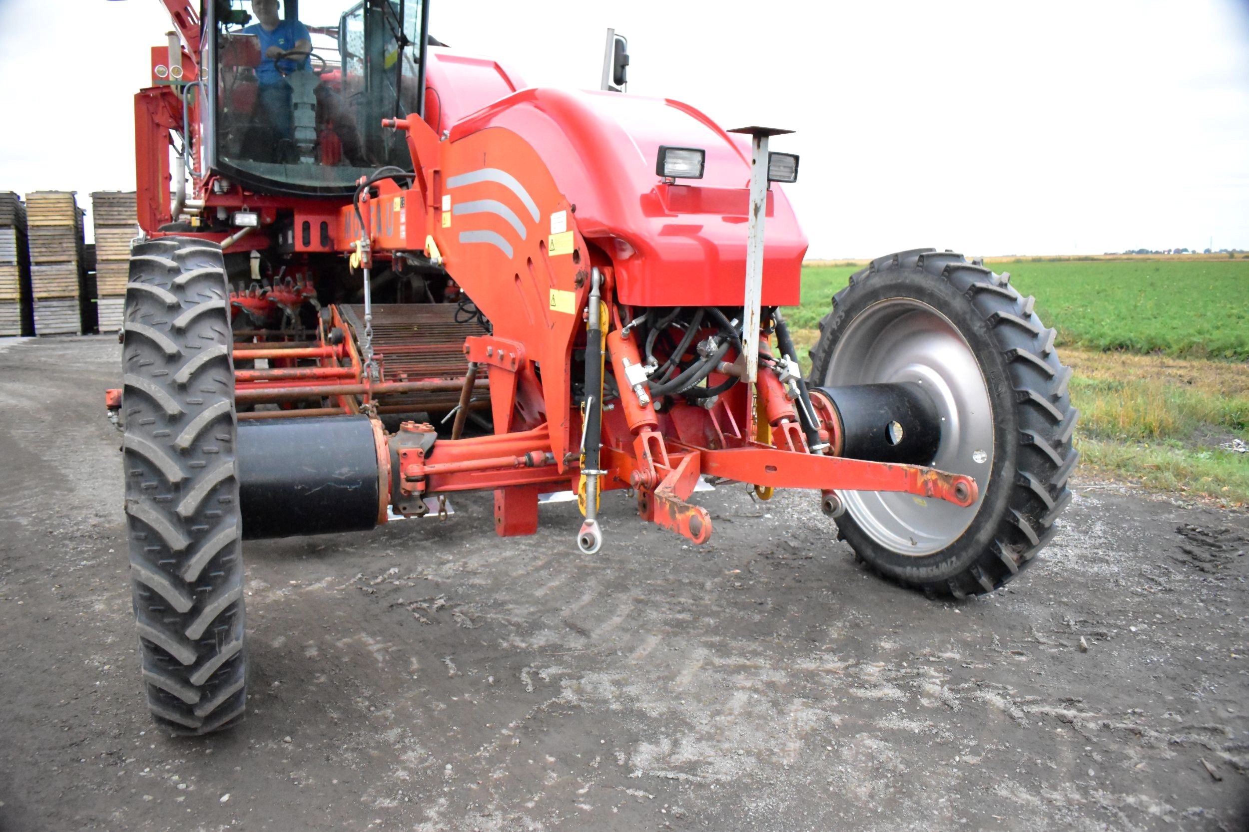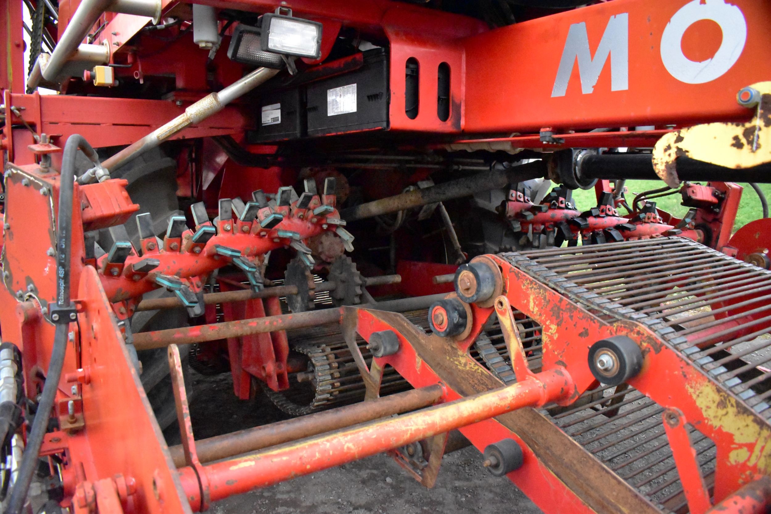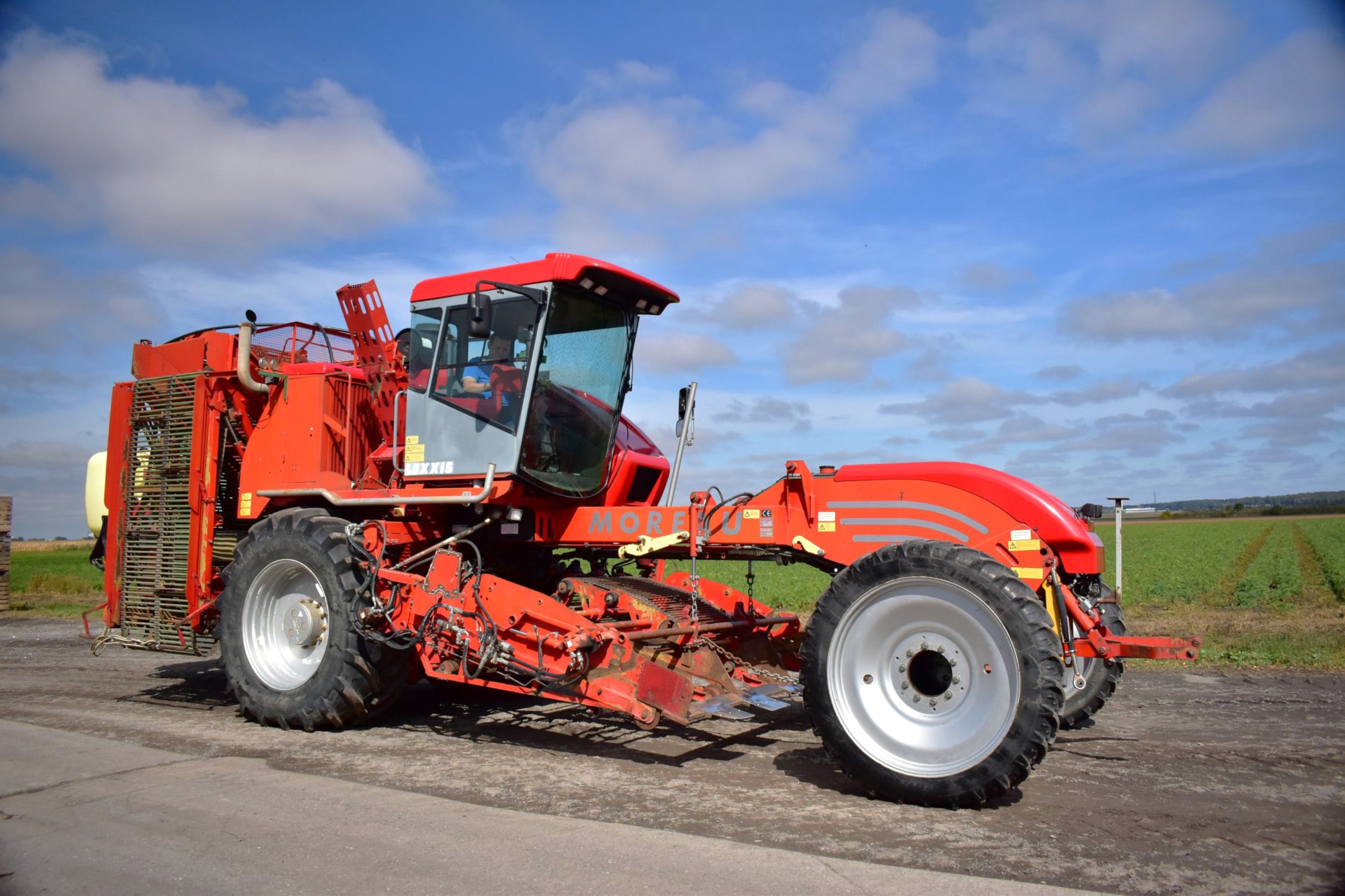 2008- Récolteuse Moreau (France), modèle Lexxis…10 pieds de largeur de récolte, soit 3 planches de 40 pouces (courroies 38 pouces) dont les deux extrémités sont ramenées à la courroie du centre…Ensuite acheminé à l’arrière dans l’élévateur vertical (et sa réserve) qui vide sur le convoyeur de décharge…4 roues motrices et directionnelles, Moteur Volvo Penta avec transmission vitesse variable, le tout a 1 600 heures…Caméra latérale et arrière…La voie avant est à 120 pouces (espaceurs de 21 pouces chacun), pneu 11 pouces de largeur (270/95R 44 Kléber)…La voie arrière est à 96 pouces (pneu 28 pouces de largeur) soit 710/70R 42 Trelleborg…Cette récolteuse faisait des endives et elle peut être modifiée facilement pour faire des oignons ou en ajoutant des becs cueilleurs de carottes, pour courges ou devenir une aide-récolteuse stable et puissante, ses possibilités sont infinies!…Regardez notre vidéo pour plus de détails…Nous livrons partout au Canada, demandez-le!
